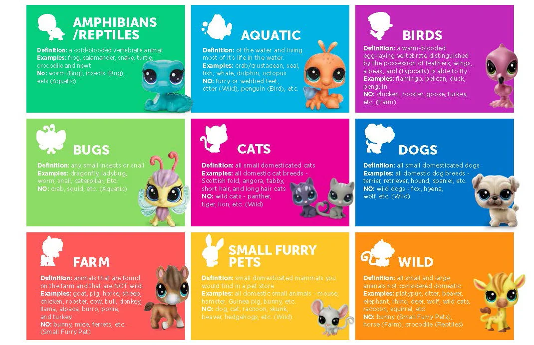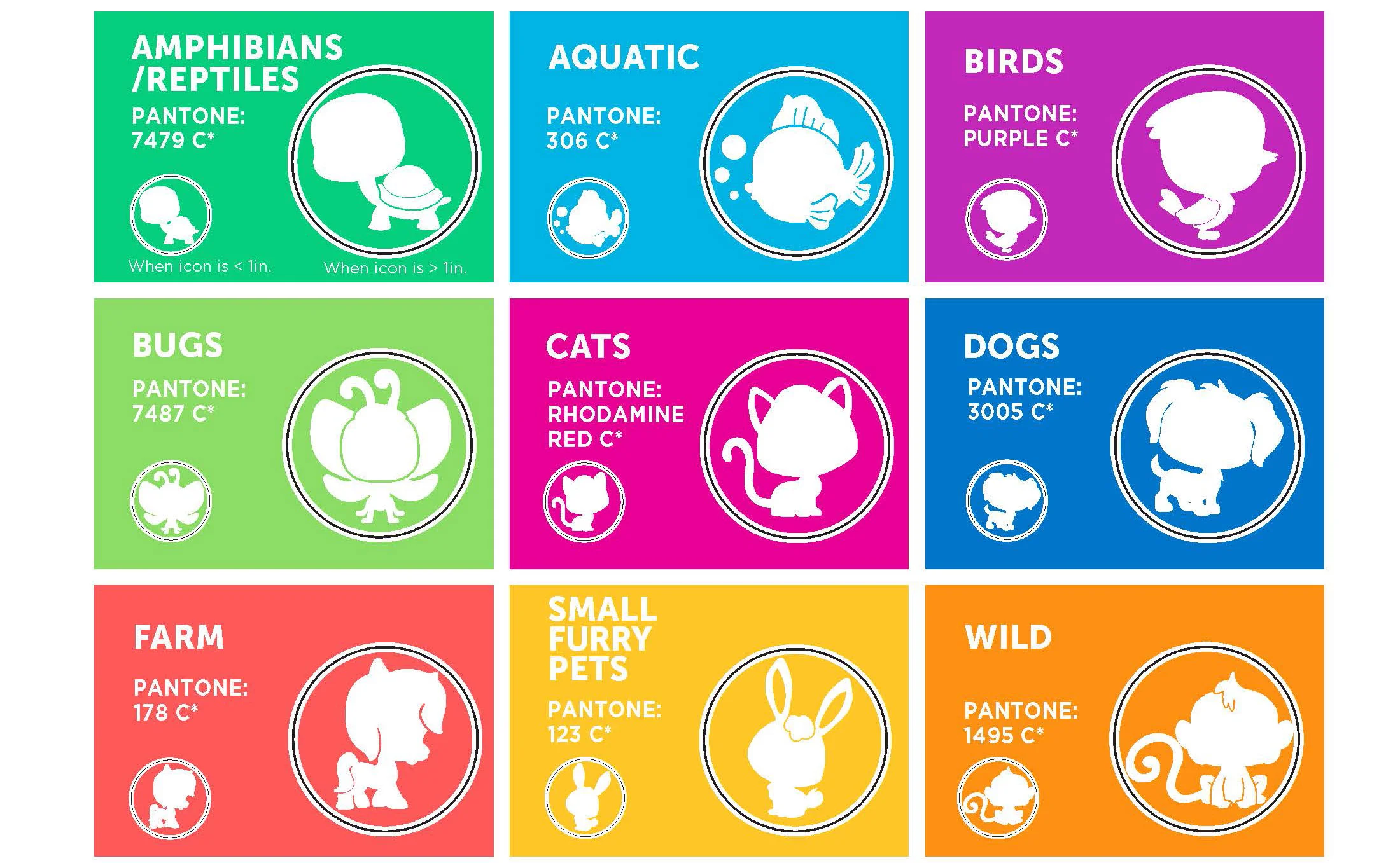Because LPS is a collectable brand, categories were determined by the product design team to help the consumer in the search for new pets to add to their collection. I developed a color coding and icon system for packaging, online and retail for the consumer to better visualize the different categories.