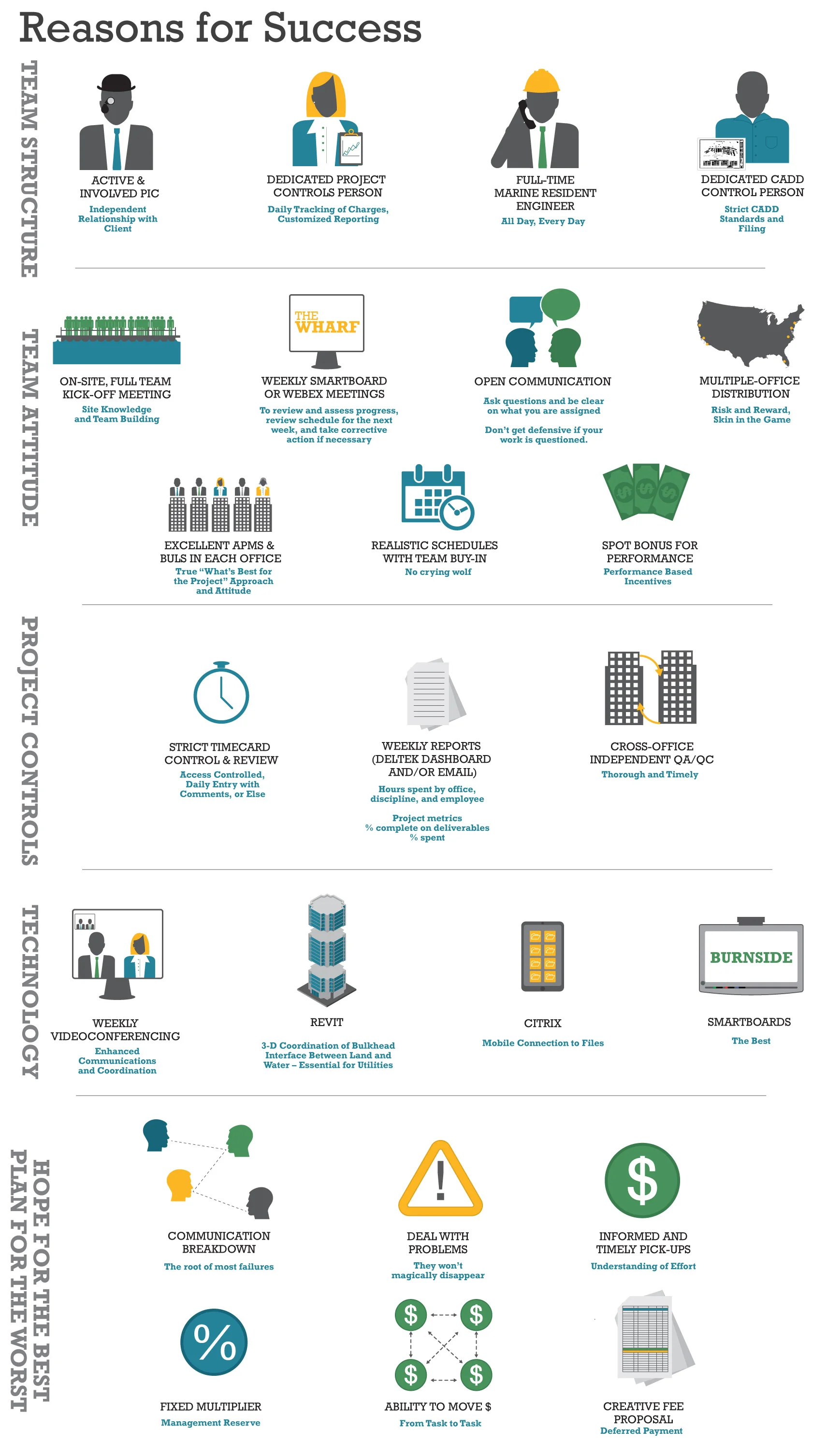 I really enjoy information design and taking complex processes, numbers or ideas and designing the information so it is easier for the viewer to understand. Through many of the proposal and presentation projects I worked on at Moffatt & Nichol, I used information design to help present civil engineering in a more digestible way.